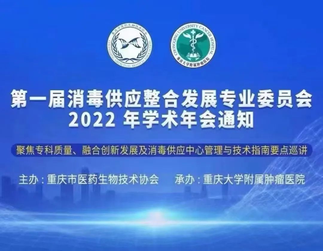 2022年9月17日,由重庆市医药生物技术协会主办,重庆大学附属肿瘤医院承办,消毒供应整合发展专业委员会学术年会在重庆大学附属肿瘤医院召开。