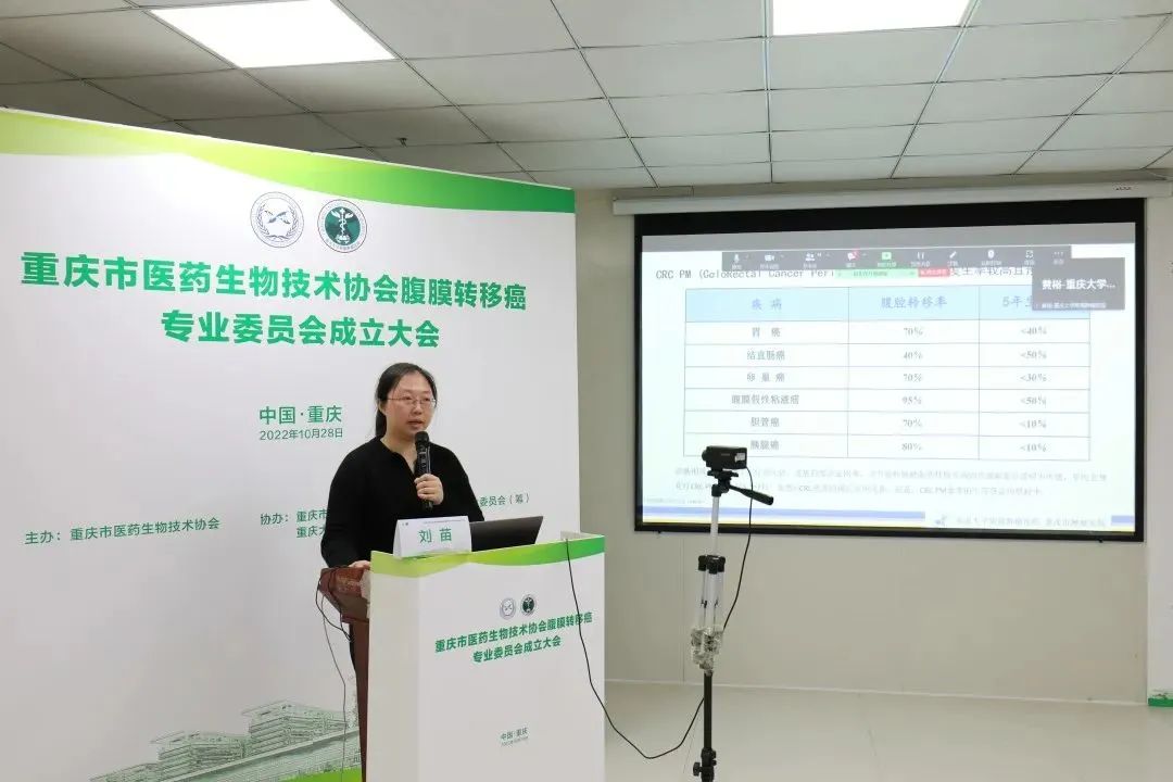 2022年10月28日,由重庆市医药生物技术协会主办,重庆市医药生物技术协会腹膜转移癌专业委员会、重庆大学附属肿瘤医院胃肠肿瘤中心承办的“重庆市医药生物技术协会腹膜转移癌专业委员会成立大会暨学术交流会”成功举行。