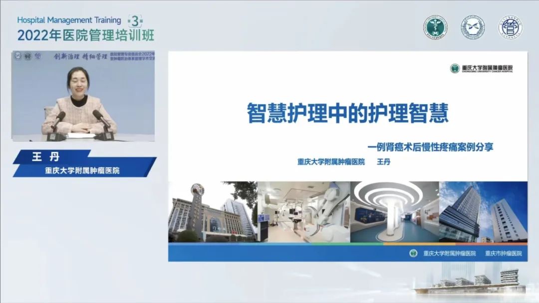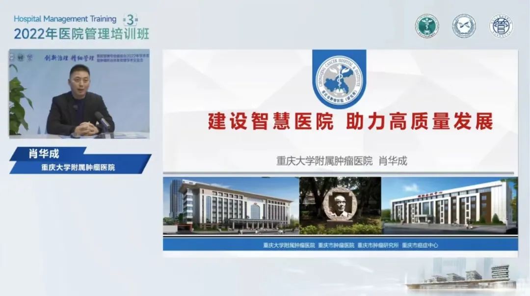 面向患者,推进智慧服务。信息工程部主任肖华成、医务部主任刘海霞、泌尿肿瘤科护士王丹分别作《建设智慧医院 促进高质量发展》《创新驱动医疗质量管理新模式》《智慧护理中的护理智慧——肾癌术后慢性疼痛案例分享》专题授课。他们分享了重庆大学附属肿瘤医院在智慧医院建设过程中的成功经验,通过以电子病历为核心的临床信息系统、优化排叫号系统、医疗项目自助预约平台、线上满意度评价、医疗质量闭环管理、患者疼痛管理等智慧医疗服务建设,推动医院精细化管理,面向患者,让医疗服务更加贴心便捷,实现智慧医院的服务价值。