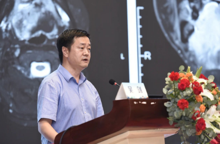 头颈肿瘤专业委员会主任委员、重庆大学附属肿瘤医院头颈肿瘤科主任吴剑致辞。他对各位专家、同道们的支持及帮助表示了衷心的感谢,希望能够与各位专家同仁继续携手,深化合作,不断创新,共同提高头颈肿瘤的诊治水平。