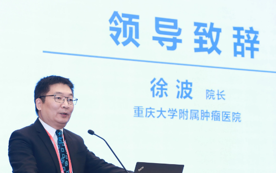 重庆大学附属肿瘤医院院长徐波致辞。他对大会的顺利召开表示热烈的祝贺,并表示,相信通过深化核医学在肿瘤精准诊疗、多学科联合治疗等领域的应用研究与临床实践,陈晓良主委团队必将在医疗、科研等领域取得显著成就。最后,徐波院长预祝大会圆满成功,期待与会者在交流中获得宝贵经验,共同推动核医学领域的发展。