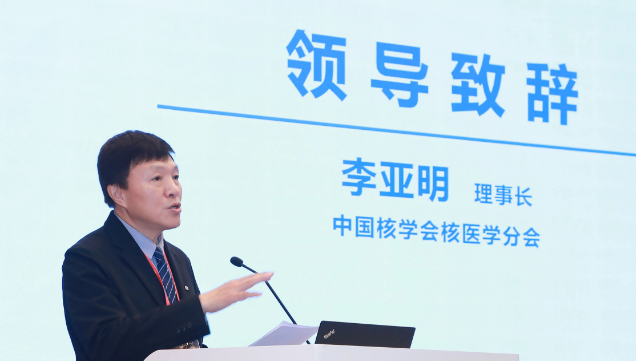 中国核学会核医学分会理事长李亚明致辞。他代表中国核学会核医学分会对本次会议的成功召开表示热烈的祝贺,并向长期以来对核医学发展给予关心和支持的各位领导、专家致以衷心的感谢。他指出本次学术年会吸引了众多核医学领域的杰出专家学者,期待在这样一个开放包容的交流平台,共同促进成渝双城经济圈乃至全国核医学事业的发展。