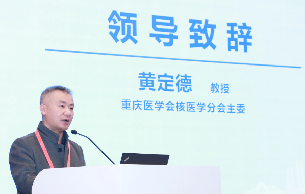 全军分子影像与核医学专委会常委、重庆市医学会核医学分会主任委员黄定德致辞。他对核医学发展态势进行深入剖析,指出在实际应用与深度科研探索的道路上,核医学仍需跨越障碍,不断突破,并呼吁整个行业秉持初心,凝聚共识,以不懈的努力和坚定的决心,攻坚克难,持续推动核医学技术迈向更成熟、更完善的新阶段。