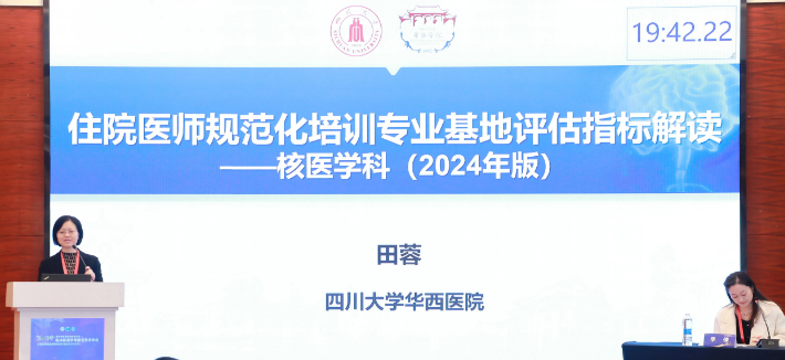中国医师协会核医学分分会副会长、四川大学华西医院田蓉教授作《住院医师规范化培训专业基地评估指标解读》报告