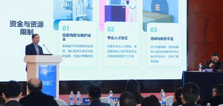 中国抗癌协会肿瘤核医学专业委员会副主任委员、山东省肿瘤医院杨国仁教授作《基层核医学的发展与思考》报告