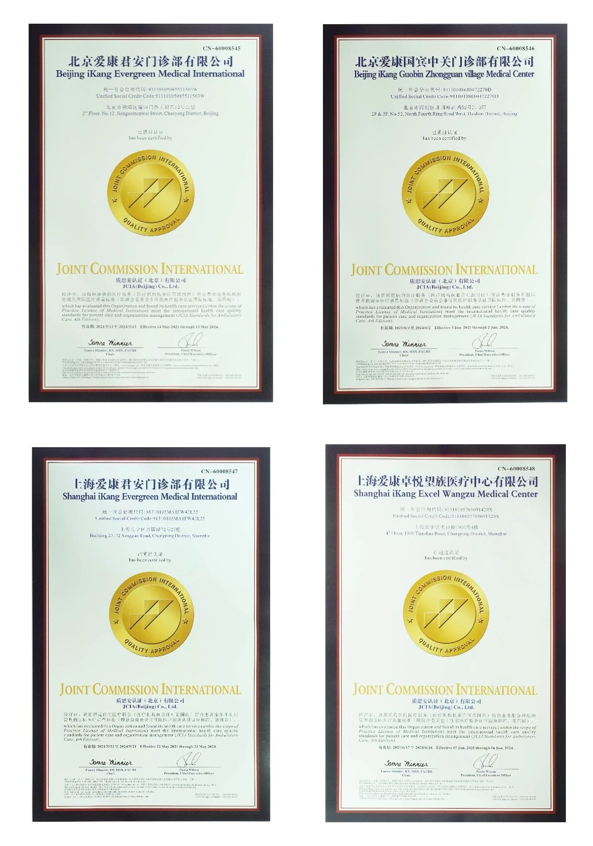 在践行医疗质量管理的路上,爱康屡获国际权威认可。2021年,爱康旗下四家体检中心(北京爱康君安健疗国际旗舰中心、北京爱康国宾中关村体检中心、上海爱康君安健疗国际旗舰中心、上海爱康卓悦望族医疗中心)荣获国际权威医疗服务认证机构JCI的认证,标志着爱康旗下体检中心的医疗服务和管理水平已与国际标准接轨。