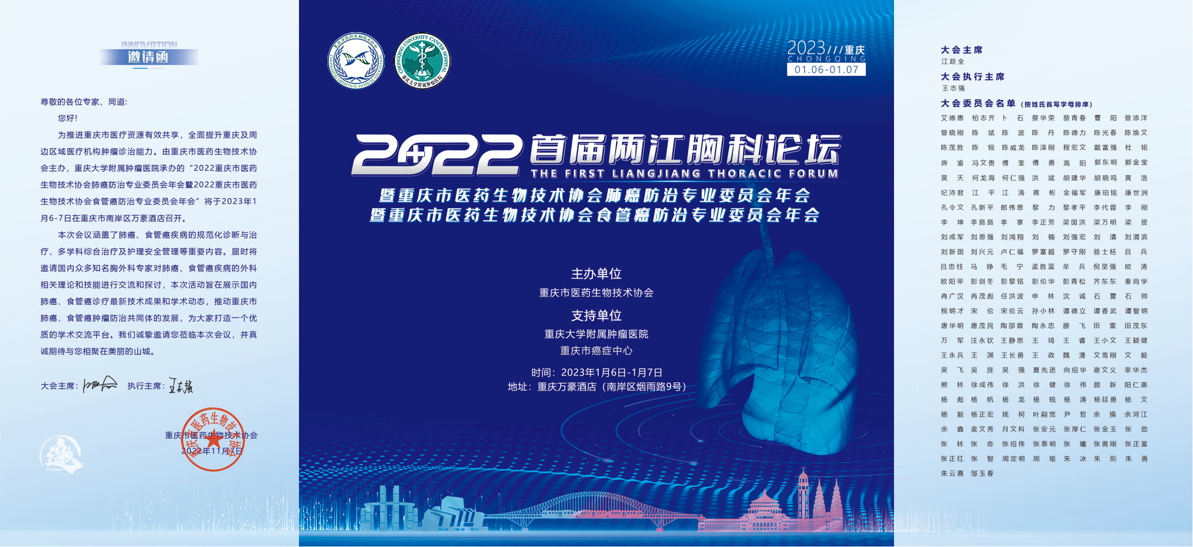 关于召开2022首届两江胸科论坛暨重庆市医药生物技术协会肺癌防治专业委员会年会暨重庆市医药生物技术协会食管癌防治专业委员会年会的通知