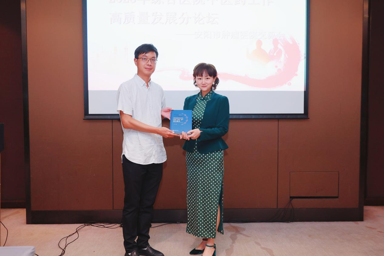在综合医院中医科发展方案研讨会上,王维主任委员分别为各医院赠送了主编的专著《肿瘤防治新模式研究与实践:中医“六位一体”整合模式》《肿瘤防治手册:中医“六位一体”整合模式问与答》,并针对各院中医药工作开展情况,进行了一对一的交流探讨,为学科发展及中医药工作提出建设性意见。