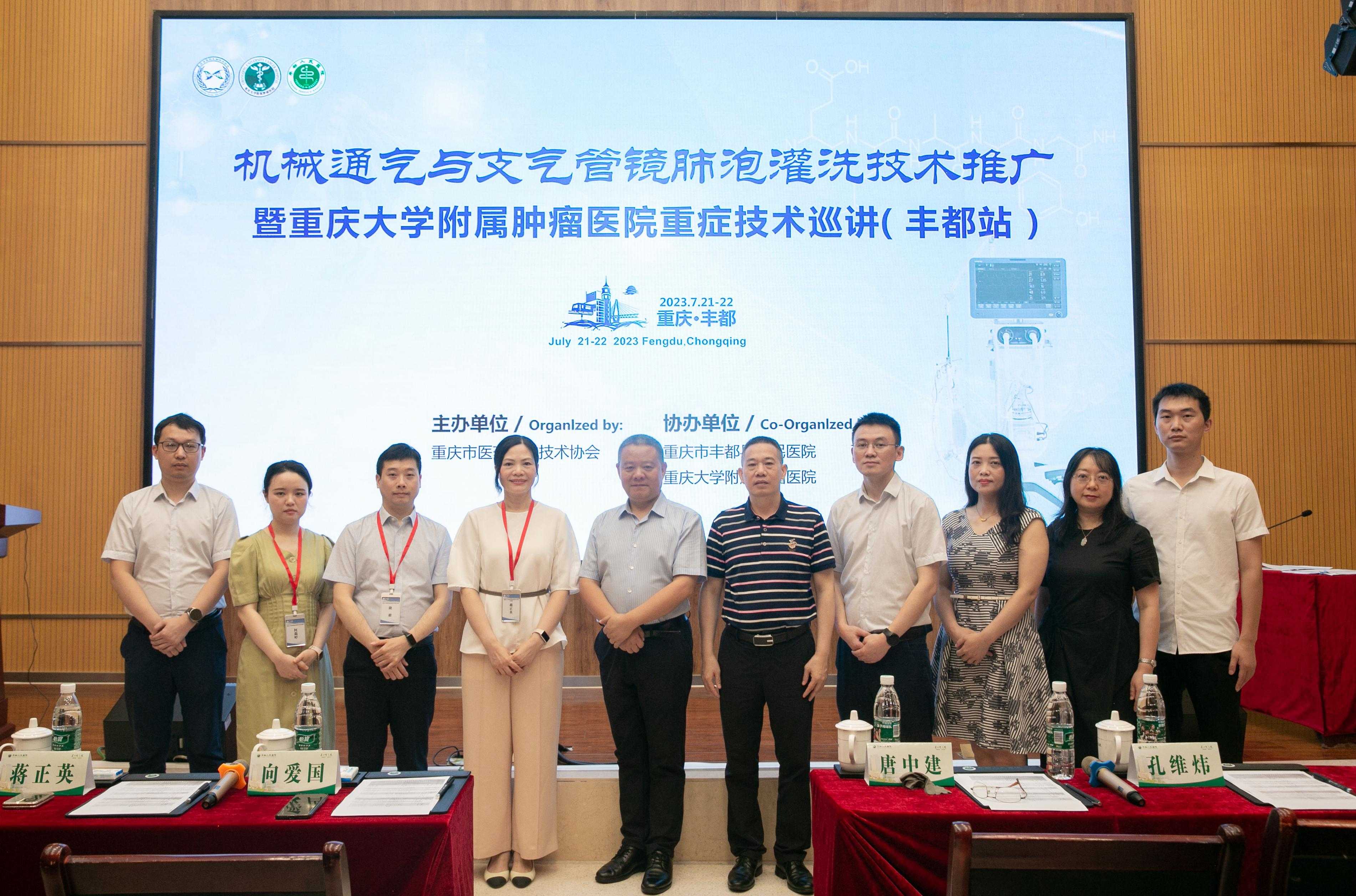 为加强区域医学同道学术交流,提高区域急危重症救治能力,提升区域机械通气与支气管镜肺泡灌洗技术的临床技术水平,推动区域急危重症医学学科发展,2023年7月21日-22日,重庆大学附属肿瘤医院重症医学科蒋正英主任带领科室团队一行4人前往重庆市丰都县人民医院开展机械通气与支气管肺泡灌洗技术推广,来自丰都县及周边区县共计80余名重症相关医师参会。