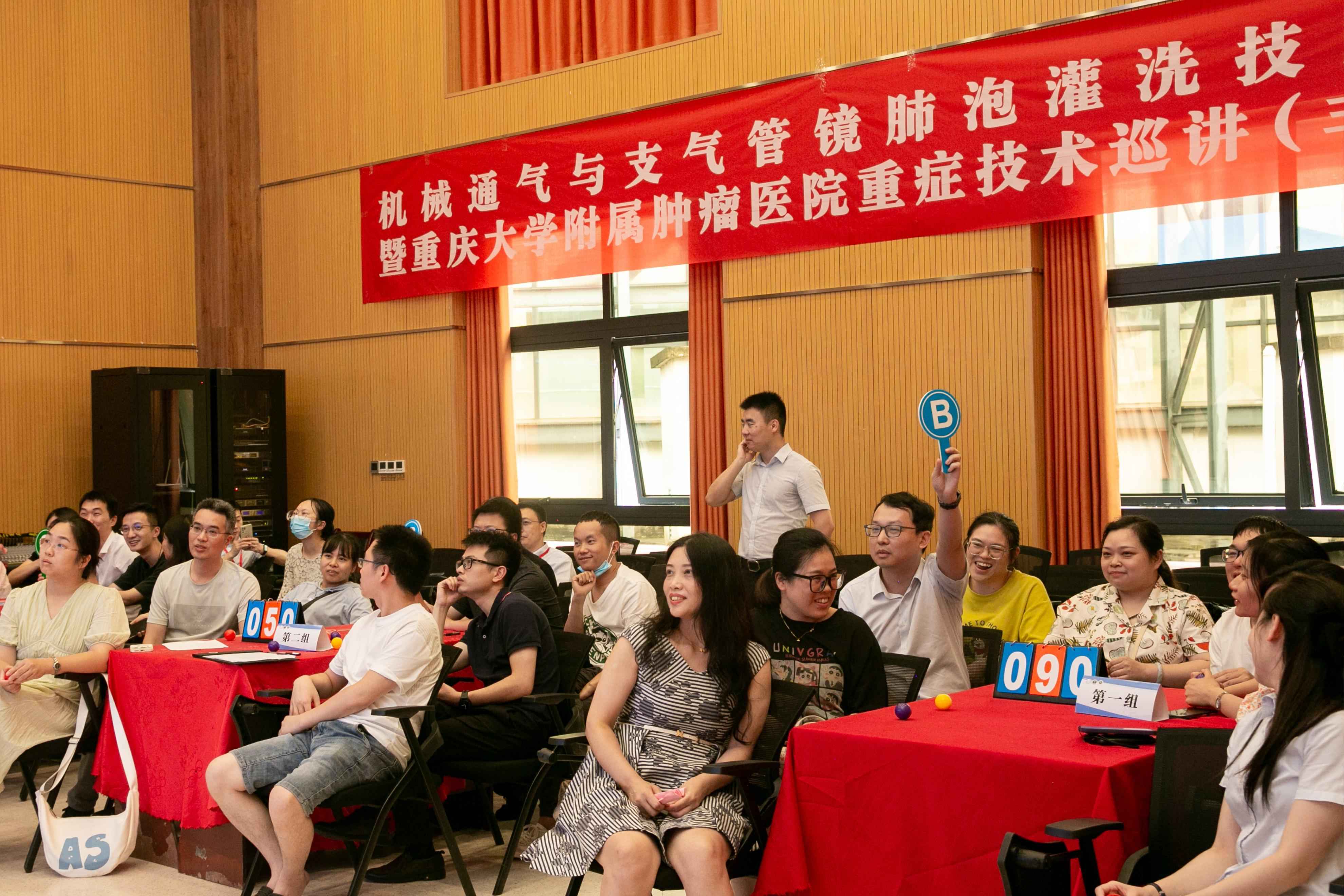 理论课程结束后,为巩固理论培训内容,学员们在导师的带领下分三组进行机械通气实操,让技术落地。培训最后,在蒋正英主任的主持下,结合理论与实操知识,开展了知识竞赛环节,学员们兴趣盎然,现场气氛火热,将培训进一步推向高潮。