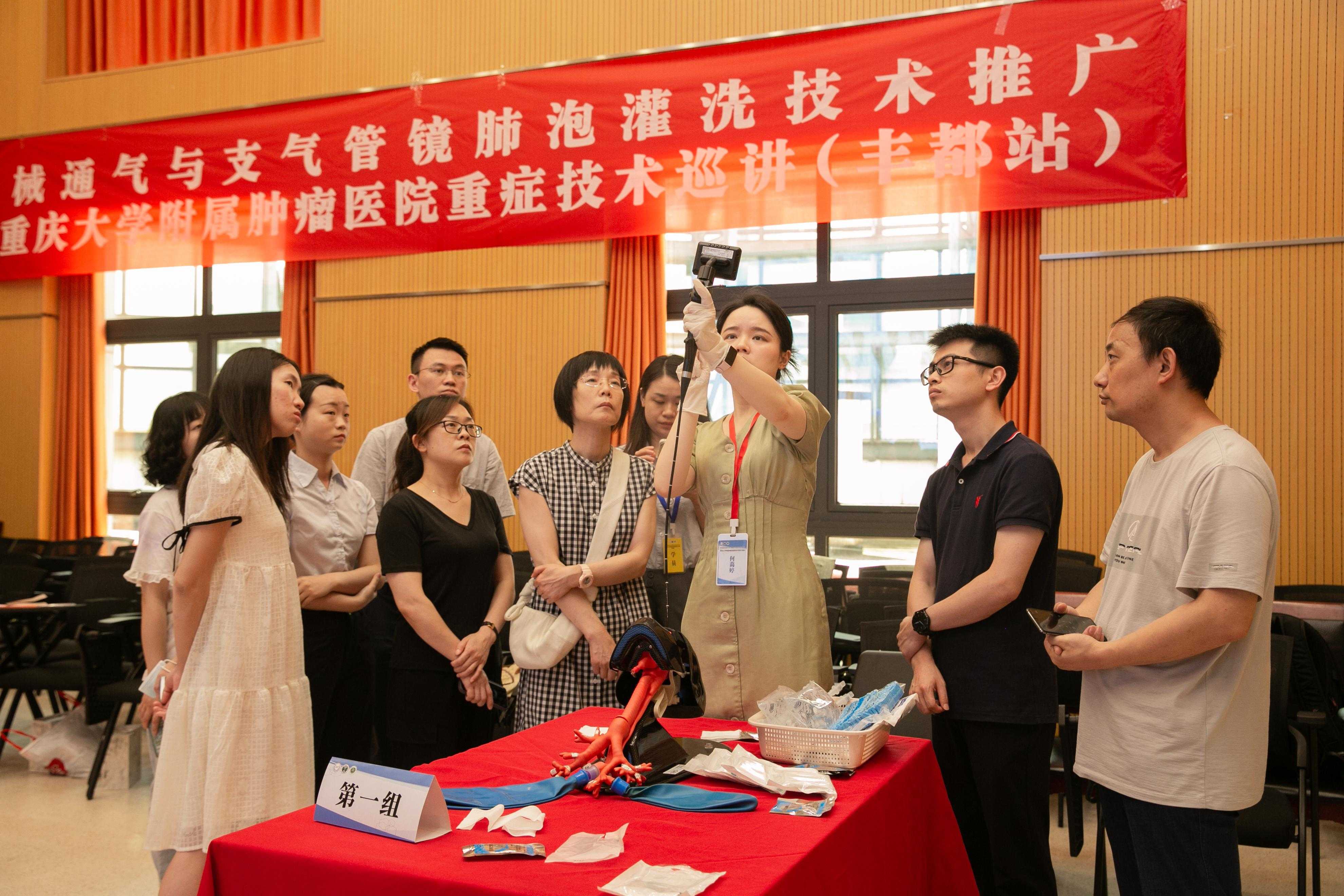 重庆大学附属肿瘤医院重症医学科科主任蒋正英代表讲师团队对丰都县人民医院党委书记向爱国和重症医学科科主任向志国的邀请表示感谢,她表示机械通气与支气管肺泡灌洗技术是每个重症医师所必须掌握的技术,培训班采取理论与实操相结合的方式,希望学员们能够将重症技术学以致用,作用临床。