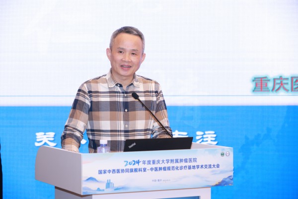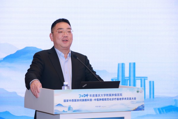 重庆大学附属肿瘤医院党委书记吴永忠致开幕辞,他充分肯定中医肿瘤科及规范化诊疗基地的既往成果,强调深化区域协作、推动中西医结合在肿瘤防治中的核心作用,并承诺医院将持续支持学科建设,助力中医药肿瘤事业高质量发展。