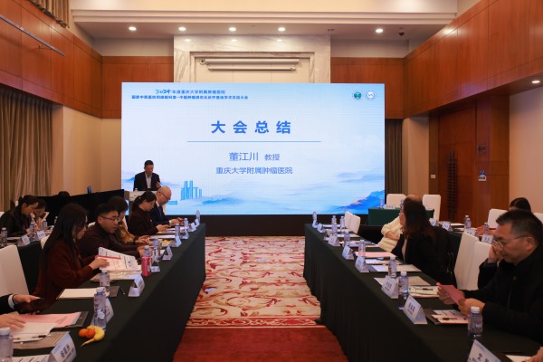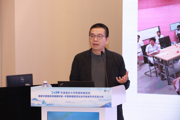2025年2月21日下午,重庆大学附属肿瘤医院牵头主办的“国家中西医协同旗舰科室暨中医肿瘤规范化诊疗基地学术交流大会”在渝州宾馆顺利召开。来自重庆、贵州等地14家医疗单位的专家学者齐聚一堂,围绕中医药防治肿瘤的临床实践、科研创新及学科建设展开深入探讨,共谋中西医协同发展新路径。