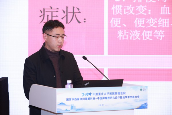 董江川主任介绍重大附属肿瘤医院中西医协同旗舰科室的建设实践,提出以“一网一链”为依托,深化科研教学、人才培养及区域合作,推动中医肿瘤诊疗规范化。