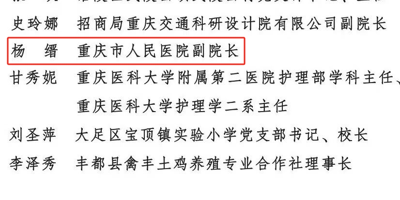 会员之窗 | 喜报!重庆市人民医院副院长杨缙荣获2024年度全国三八红旗手称号!