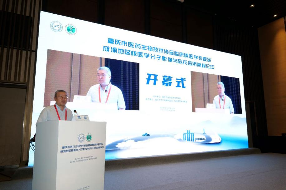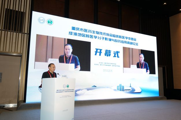 重庆市医学会核医学分会主任委员、重庆市医药生物技术协会临床医学专委会副主任委员庞华教授向本次大会的召开表示热烈祝贺,庞华教授强调放射性药物研发与临床应用在核医学中的重要价值,希望依托成渝地区双城经济建设的发展契机、深化跨成渝区域合作,促进成渝地区核医学联系进一步加强。