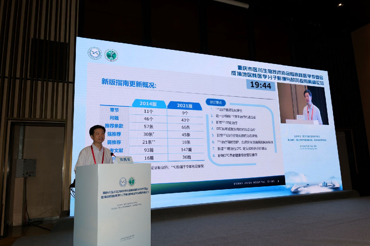 2022年6月25日下午,由重庆市医药生物技术协会主办,重庆市医药生物技术协会临床医学专委会承办、重庆大学附属肿瘤医院核医学科协办的成渝地区核医学分子影像与放药应用高峰论坛在重庆丽笙酒店顺利召开。来自重庆、四川、甘肃、北京(线上),上海(线上)等18所高校、研究所、医疗机构的80余名专家、嘉宾参与本次会议。