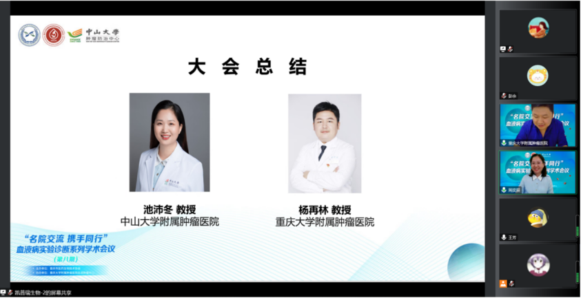 总结环节,池沛冬教授表示,本次交流,双方带来的病例都非常精彩,不仅在临床上具有开拓性,也为科研提供了方向,大家都受益匪浅。最后,杨再林教授再次感谢各位老师的参与,并表示,善于发现临床中一些容易忽视的现象,深入探索其背后的机制,通过深入的沟通交流,为临床提供有价值的线索,是血液病实验诊断工作者所追求的目标。