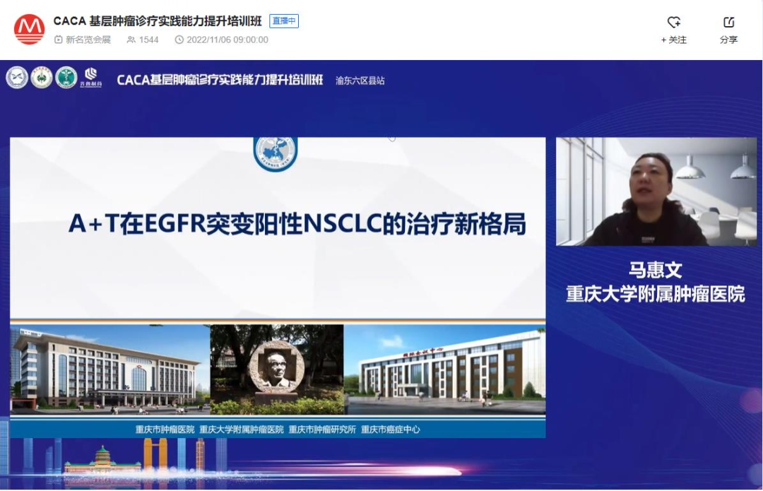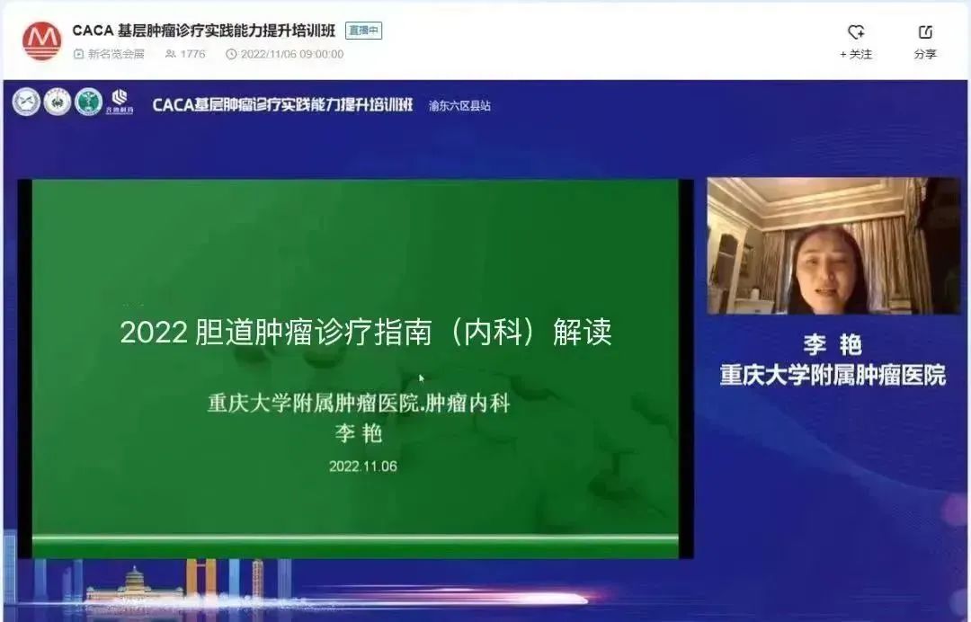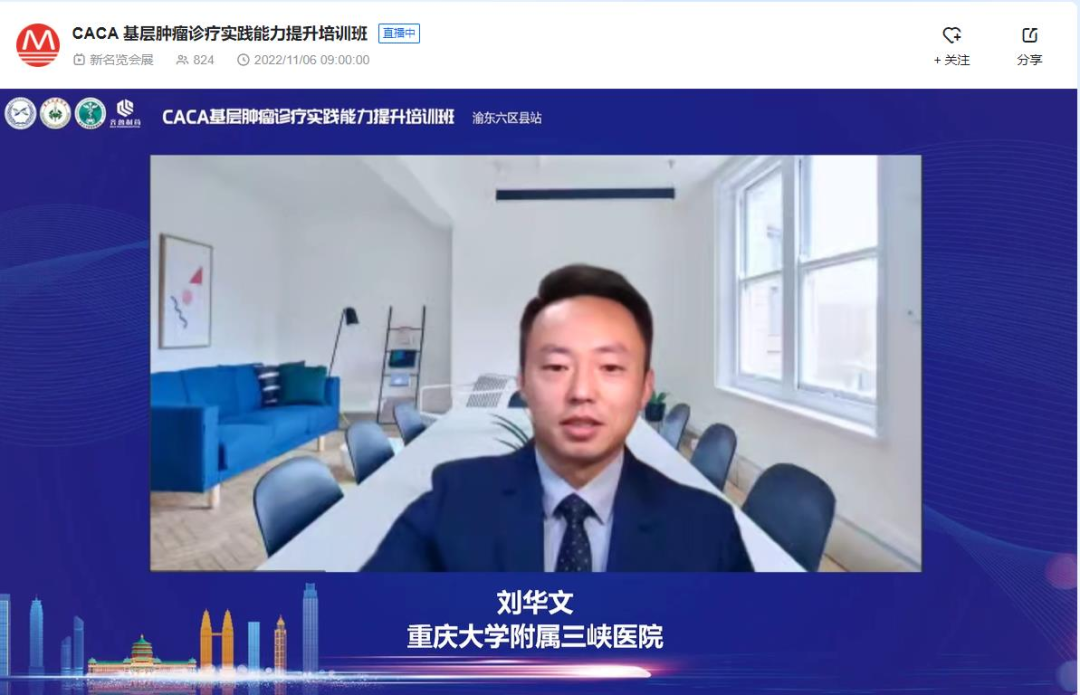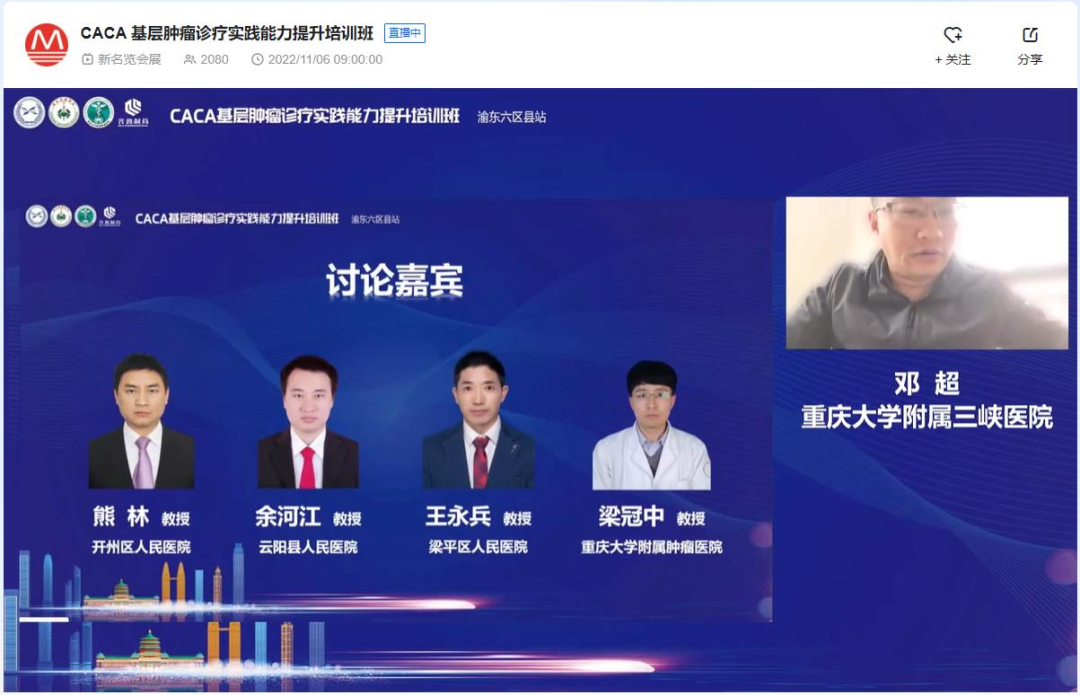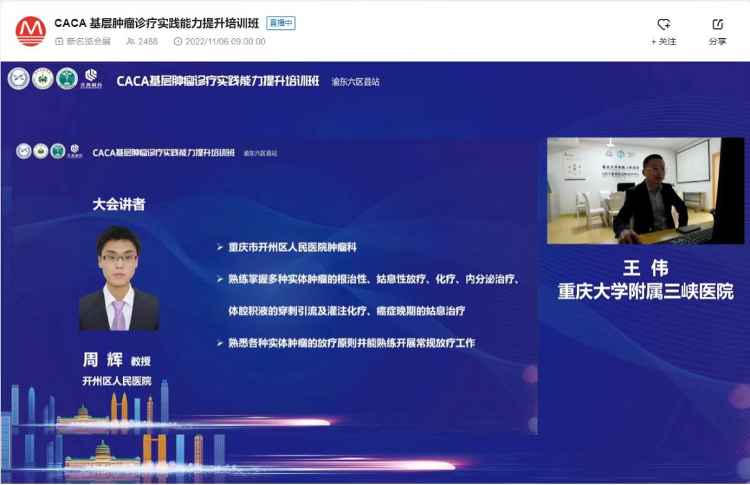 11月6日,由中国抗癌协会主办,重庆市医药生物技术协会、重庆抗癌协会、重庆大学附属肿瘤医院承办,中国抗癌协会(CACA)基层肿瘤诊疗实践能力提升培训会(渝东片区)通过线上的形式举行,来自三峡中心医院、梁平区人民医院、忠州区人民医院、云阳县人民医院、开州区人民医院和石柱县人民医院的相关专家参加本次线上培训。