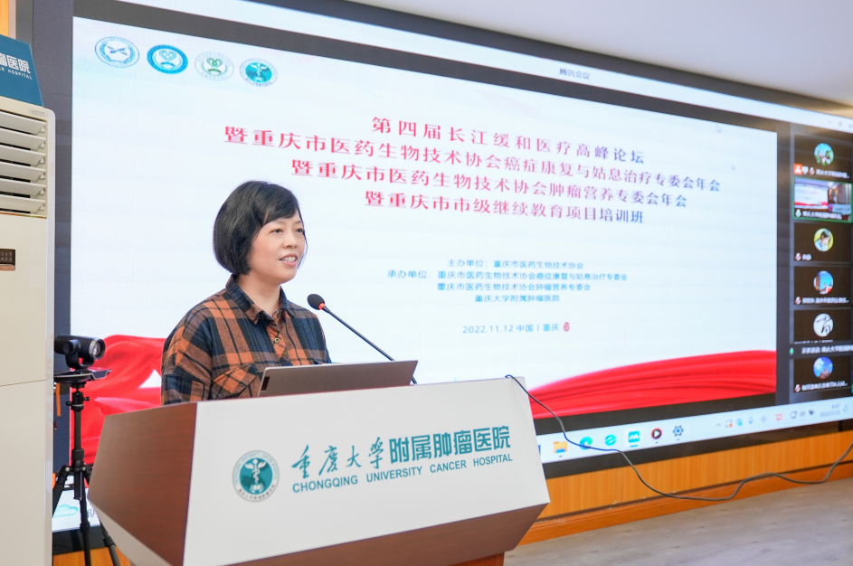 又是一年金秋好时节,2022年11月11日-12日,由重庆市医药生物技术协会主办,重庆市医药生物技术协会癌症康复与姑息治疗专委会、肿瘤营养专委会、重庆大学附属肿瘤医院老年肿瘤科、营养科承办的“第四届长江缓和医疗高峰论坛暨重庆市医药生物技术协会癌症康复与姑息治疗专委会年会暨重庆市医药生物技术协会肿瘤营养专委会年会暨重庆市市级继续教育项目培训班”成功举办。