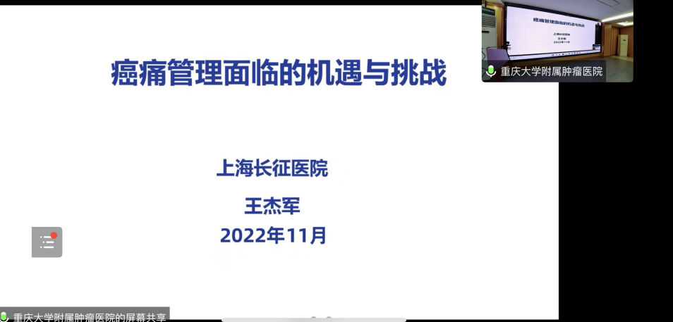 中国临床肿瘤学会肿瘤支持与康复治疗专家委员会(SCRC)主任委员王杰军在视频致辞中表示近年来看到重庆地区团队围绕肿瘤支持与姑息治疗做出了许多贡献,也非常高兴的看到重庆地区的医护同仁们在关注抗肿瘤治疗的同时,也关注患者,真正的做到了针对一位肿瘤患者而非肿瘤本身。希望重庆的团队们能够在肿瘤支持与姑息方面做得越来越好,发挥更大的作用。