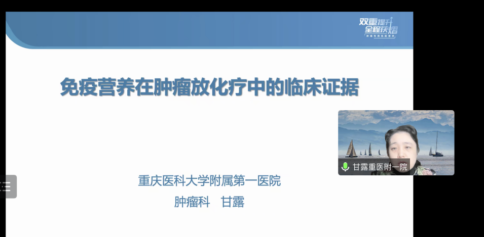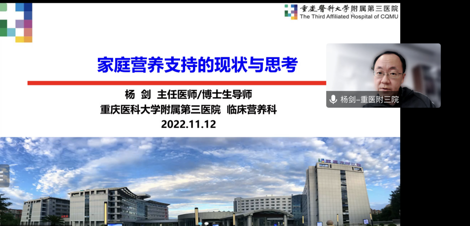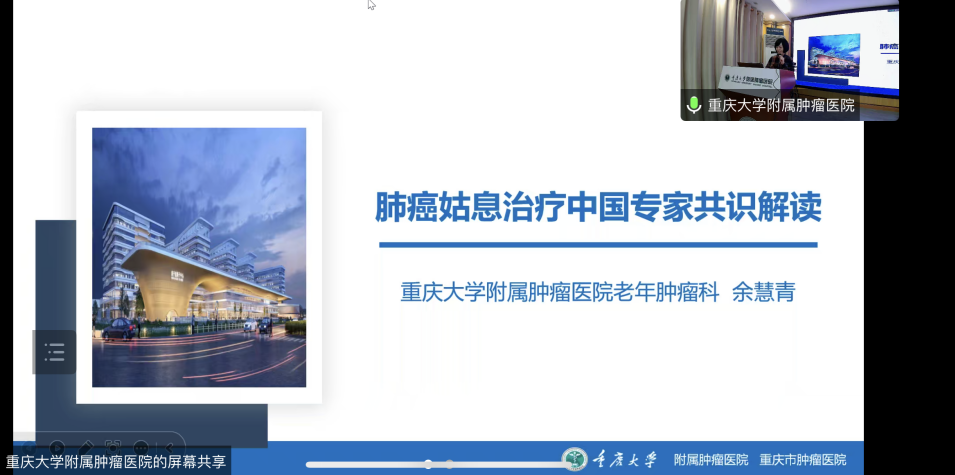 陆军军医大学西南医院唐春兰作《ALK阳性晚期NSCLC治疗的机遇与挑战》专题讲座,重庆医科大学附属第三医院杨剑作《家庭营养支持的现状与思考》专题讲座,陆军军医大学附属新桥医院白莉作《小细胞肺癌免疫治疗新进展》专题讲座