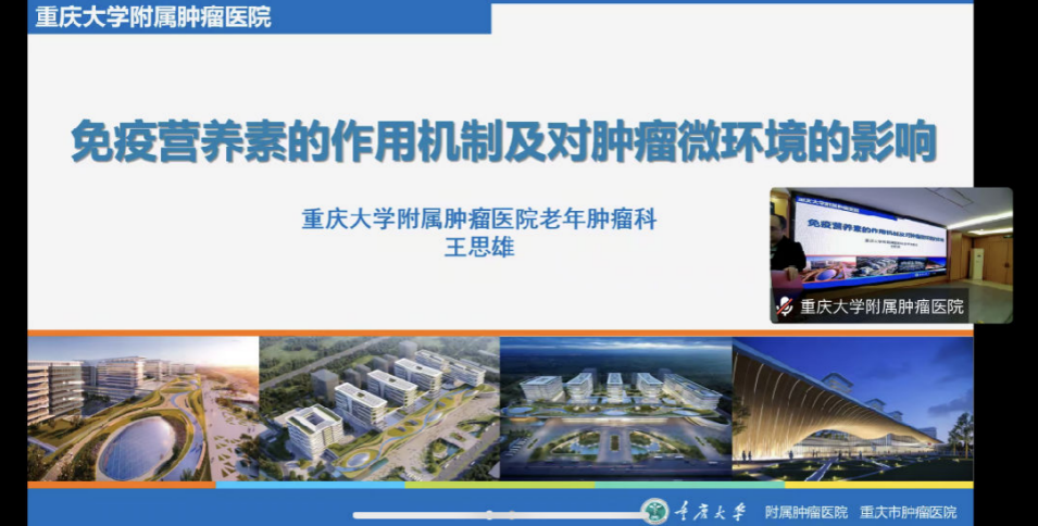 重庆医科大学附属第一医院甘露作《免疫营养在肿瘤放化疗中的临床证据》专题讲座,重庆松山医院杨志祥作《肺癌融合基因靶点诊疗进展盘点》专题讲座,肿瘤医院王思雄作《免疫营养素的作用机制及对肿瘤微环境的影响》专题讲座