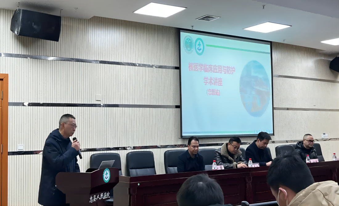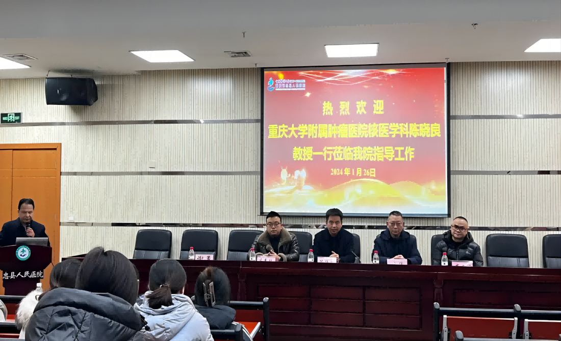 为深入开展重庆市“一网一链”肿瘤防治体系建设,提升区县肿瘤防治能力,加速推进核医学“一县一科”建设,1月26日,重庆市医药生物技术协会临床核医学专委会主任委员陈晓良带队赴重庆市忠县人民医院开展核医学学科建设帮扶活动及学术讲座。忠县人民医院副院长叶华、医务科副主任杨雄堡及相关科室负责人、技术骨干100余人参加学术活动。