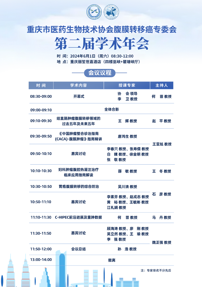 会议通知 | 重庆市医药生物技术协会腹膜转移癌专委会第二届学术年会议程通知