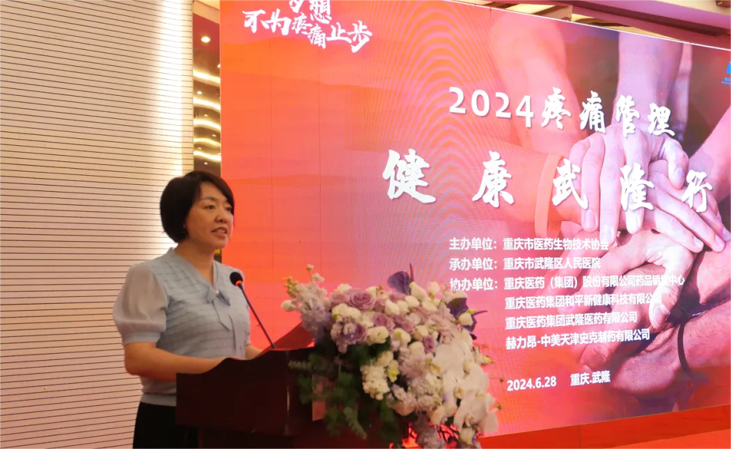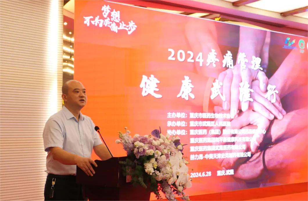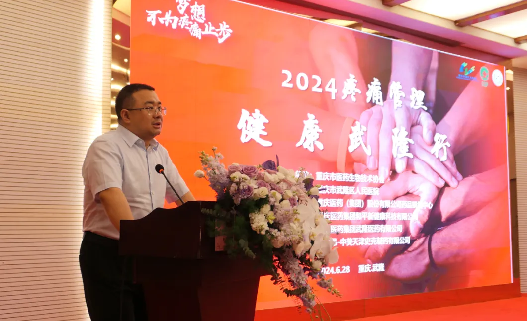 为推动健康中国建设,拓展区域内医疗机构全流程疼痛诊疗服务,加快武隆康复医学学科建设。6月 28 日,由重庆市医药生物技术协会主办,重庆市武隆区人民医院承办,重庆医药(集团)股份有限公司药品销售中心、重庆医药集团和平新健康科技有限公司、重庆医药集团广阔医药有限公司、重庆医药集团武隆医药有限公司、赫力昂中美天津史克制药有限公司协办的“2024 疼痛管理—健康武隆行”学术会议,在重庆市武隆区顺利召开。本次会议邀请到重庆医科大学附属第一医院康复医学科白定群教授团队、市内其他区县及武隆区康复医学相关专业的代表参会。