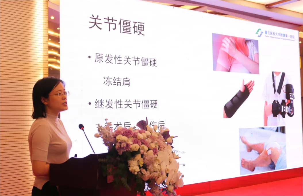 重庆医科大学附属第一医院康复医学科副主任医师吴丹冬带来了“新技术在关节僵硬中的应用”,关节僵硬的发生机制与治疗、激素注射在关节僵硬中的应用、牵伸支具在关节僵硬中的应用。吴教授此次分享内容详实,并列举案例,所提及的新技术和治疗方法具有很强的实操性,为广大医疗工作者和患者带来了新的希望和启示。不得不说,吴教授此次分享很实用,让我们对关节僵硬的治疗有了更深入的理解和更广阔的思路。