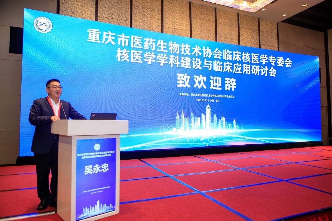 大会开幕式上,重庆市医药生物技术协会理事长、重庆大学附属肿瘤医院党委书记吴永忠书记介绍了重庆市大学附属肿瘤医院的概况,对各位专家学者的到来表示热烈欢迎,并表示支持核医学科建设、欢迎市内外专家交流执导。