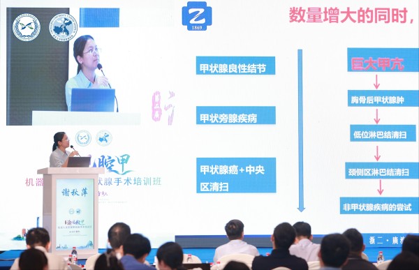浙江大学附属第二医院谢秋萍教授作《腔镜下甲状腺功能亢进手术处理》专题报告。她对腔镜下甲状腺功能亢进手术处理提出了自己的看法,分享了对于甲亢患者,甲状腺巨大同时血供极其丰富的情况下,腔镜手术的难度及处理经验。