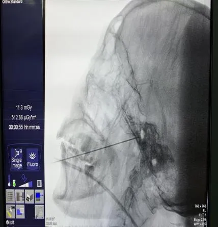 近一年来,荣医疼痛科在C型臂或DSA影像引导下运用穿刺针为多名患者实施的三叉神经半月节射频热凝术或三叉神经半月节微球囊压迫术,经术后长期随访,患者疼痛完全消失。