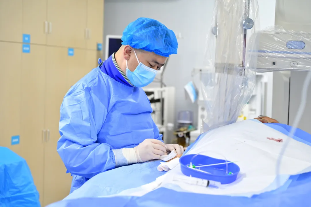 病情得到基本控制后,何某经急诊绿色通道快速转入沙坪坝区陈家桥医院。心血管内科副主任医师邹志方紧急行补救性PCI治疗及冠脉造影术,术中发现右冠狭窄95%伴血栓,成功安装支架1枚。术后,患者病情稳定,救治成功。