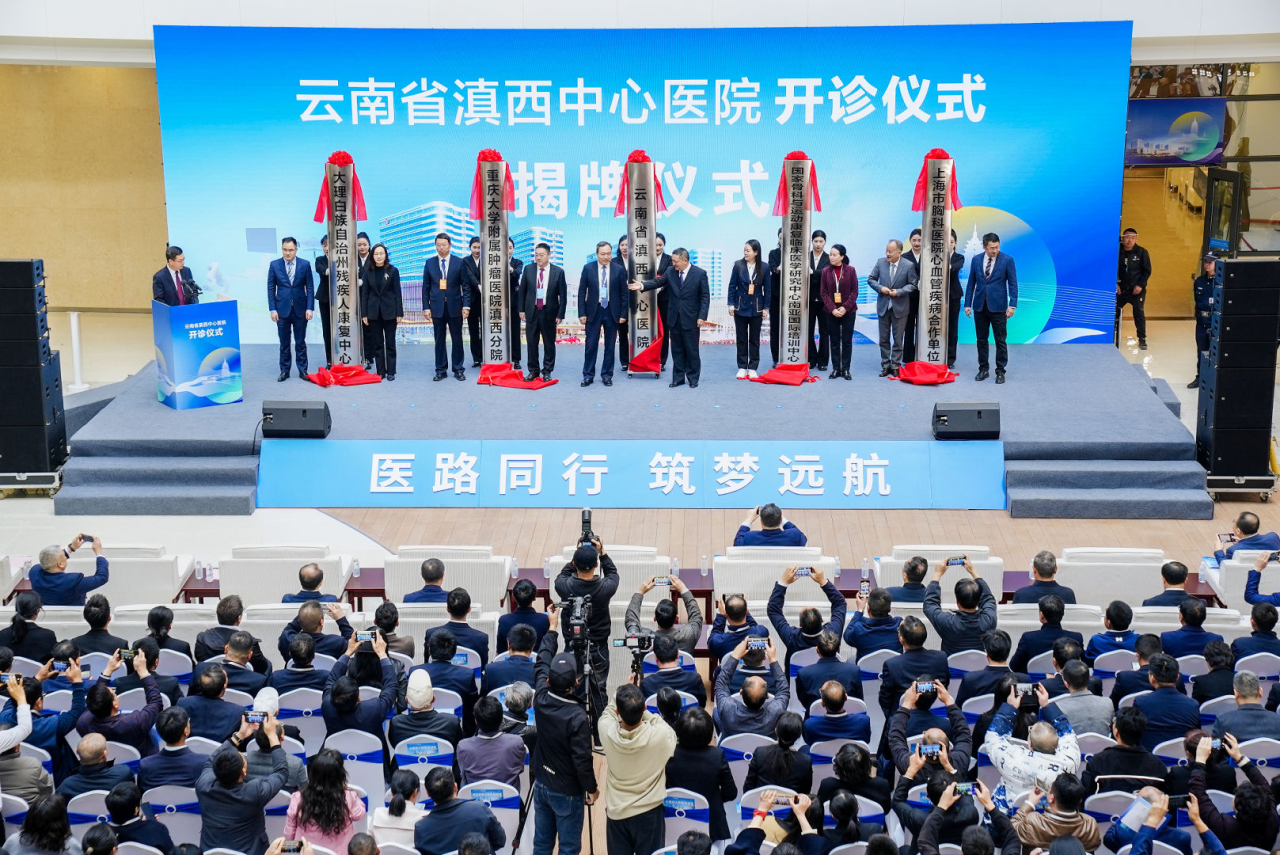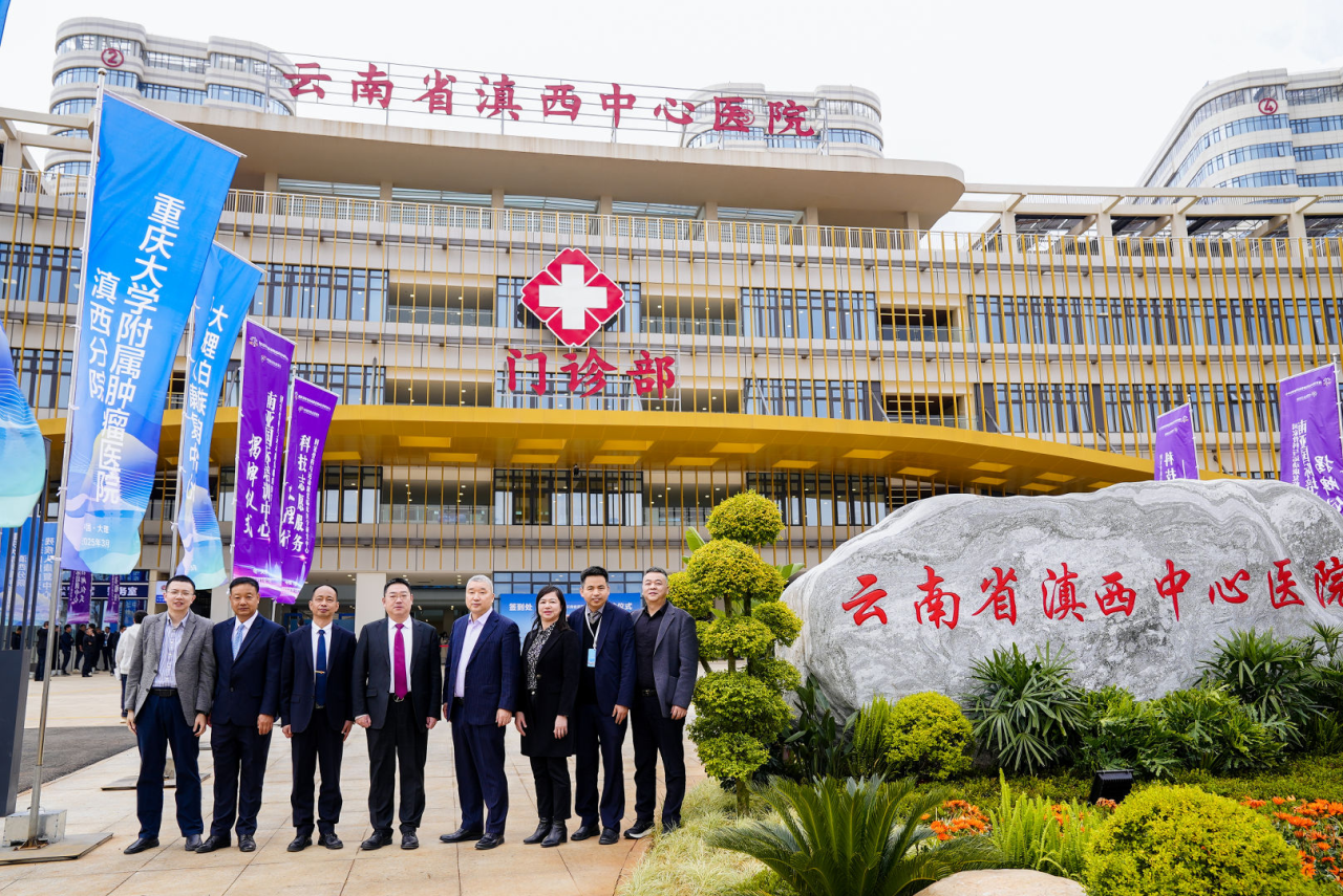 3 月 17 日,云南省滇西中心医院开诊仪式隆重举行。州委书记杨国宗出席仪式并宣布开诊。在大理州委、州政府及社会各界的共同见证下,州政协主席程鹏和党委书记吴永忠共同为重庆大学附属肿瘤医院滇西分院揭牌。