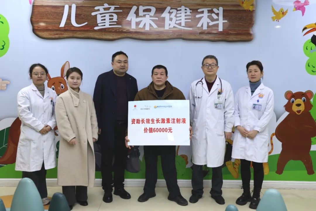 3月12日,我院儿童保健科联合中国红十字基金会,向一名家庭经济困难的矮小患儿捐赠6万元治疗用药,助力孩子健康成长。