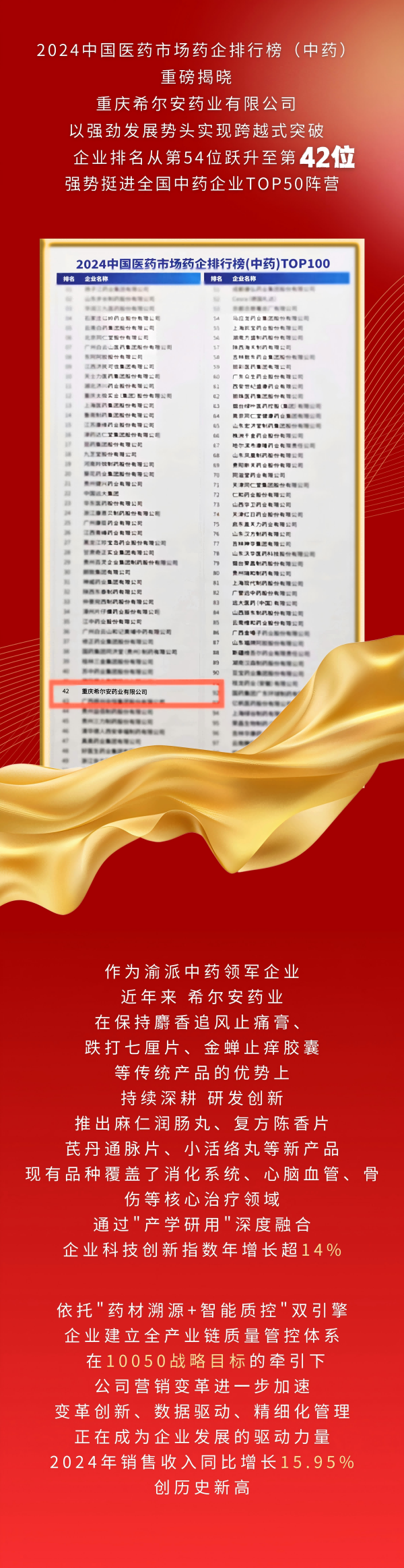 会员之窗 | 希尔安药业中国医药市场药企排行榜(中药)排名跃升至第42位!