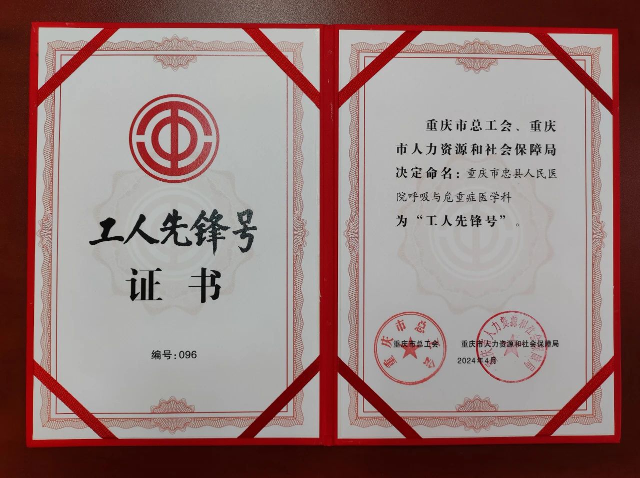 2025年3月13日,在忠县举行的忠县总工会第十一届委员会第五次全体(扩大)会议上,县总工会为忠县人民医院呼吸与危重症医学科颁发了重庆市总工会授予的工人先锋号荣誉证书和奖牌。