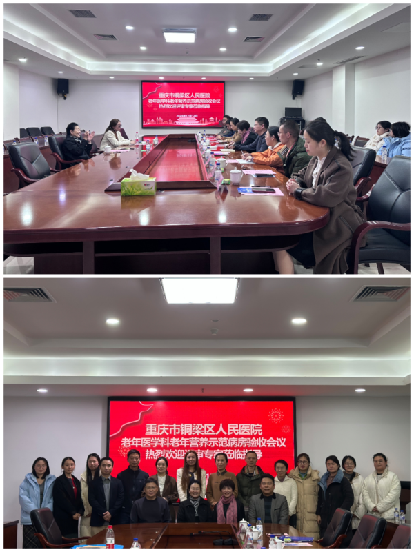 全国老年营养示范病房创建工作是由中国老年医学学会委托老年医疗机构管理分会在全国范围内开展的一项连续性、长期性工作。2024年12月12日,中国老年医学学会老年医疗机构管理分会秘书长张进平教授亲临我院开展全国老年营养示范病房评估验收工作。铜梁区老科协会长张丽娟、医院党委书记刘人铭及老年医学科、临床营养科、药剂科等相关人员陪同迎检。