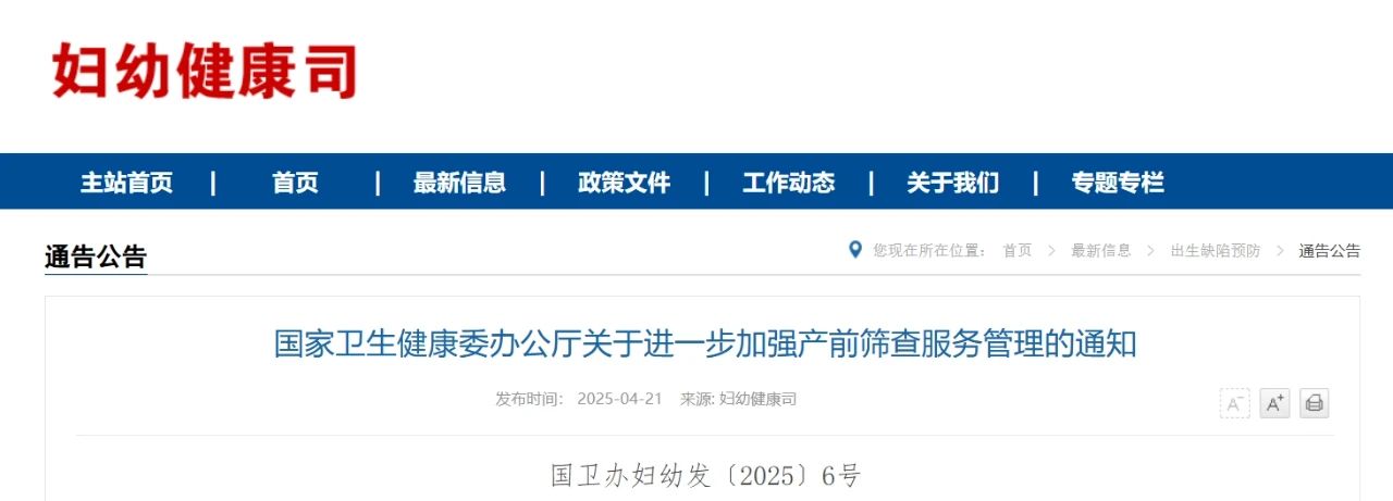 政策解读 | 国家卫生健康委办公厅关于进一步加强产前筛查服务管理的通知(附解读)