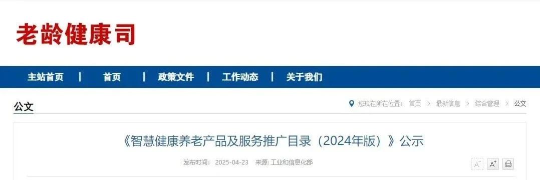 药闻资讯 | 《智慧健康养老产品及服务推广目录(2024年版)》公示