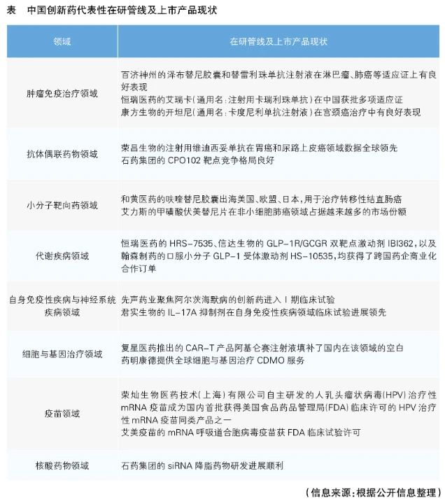 近年来,中国创新药企业在不同治疗领域和技术路线上展现出显著的专业化和差异化布局,不少管线及上市产品实现“中国新”乃至“全球新”(详见表)。
