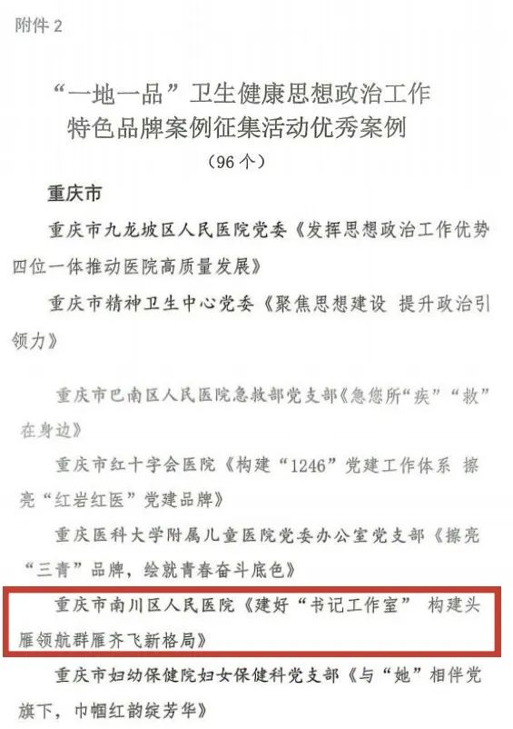 会员之窗 | 重庆市南川区人民医院党建案例获全国“一地一品”卫生健康思想政治工作特色品牌优秀案例