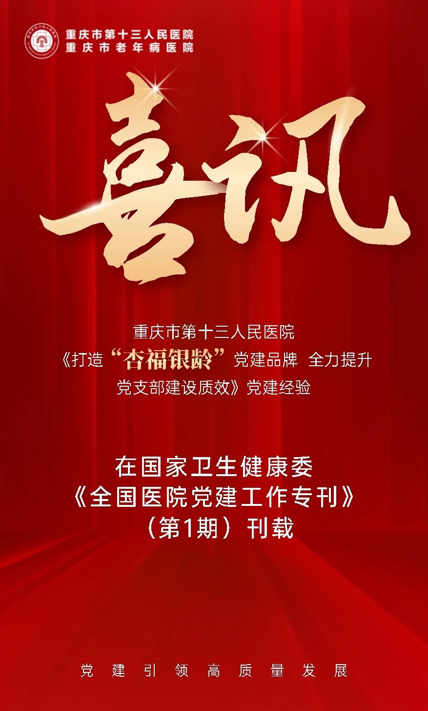会员之窗 | 喜讯!重庆市第十三人民医院“杏福银龄”党建品牌在国家卫生健康委《全国医院党建工作专刊》上作经验交流