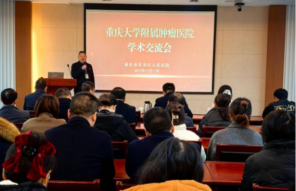 2025年12月11日,重庆大学附属肿瘤医院核医学科主任陈晓良教授率团队赴重庆市长寿区人民医院开展2025年第二十七期核医学新技术推介讲座。长寿区人民医院院长綦俊对陈晓良主任一行的到访表示热烈欢迎,双方围绕核医学临床应用与学科发展展开深入探讨。