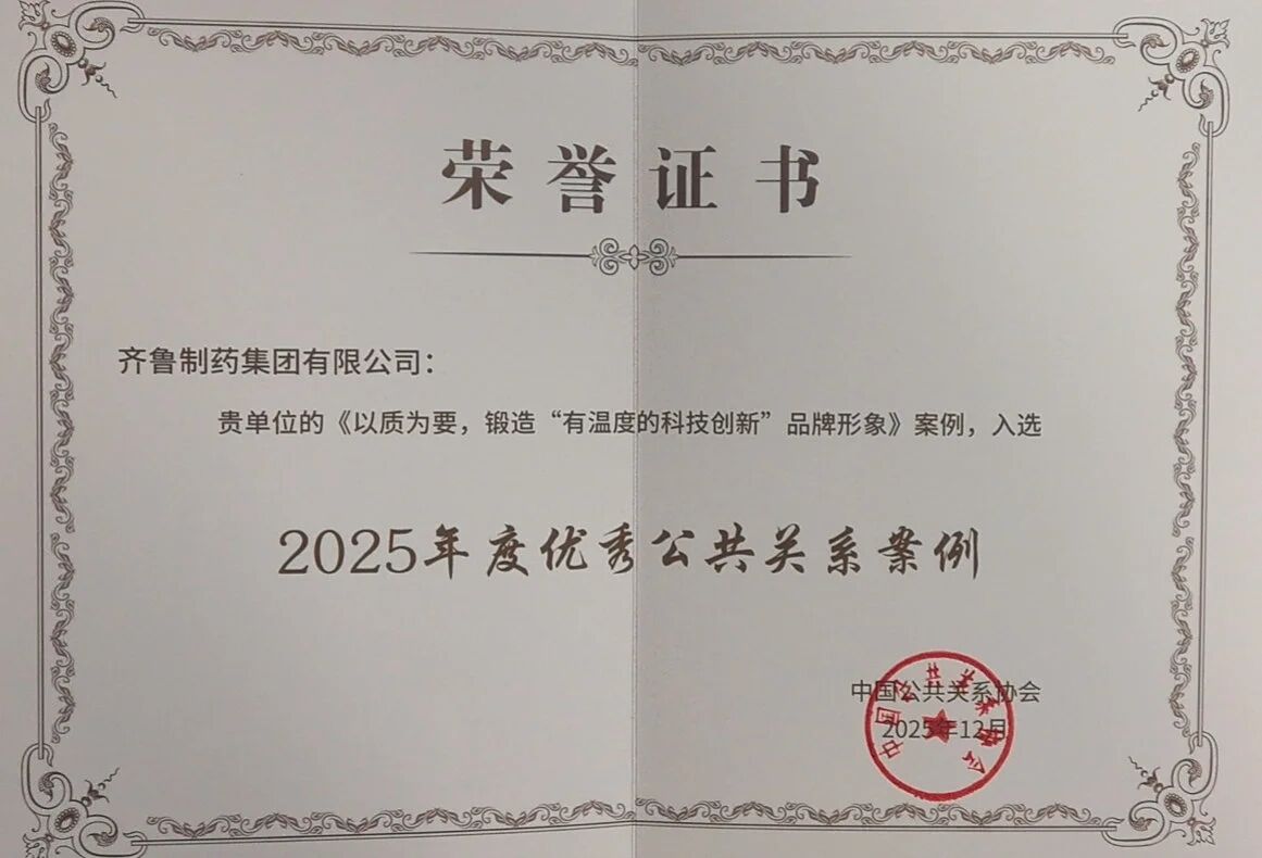 会员之窗 | 齐鲁制药集团获评 “2025中国公共关系优秀案例”