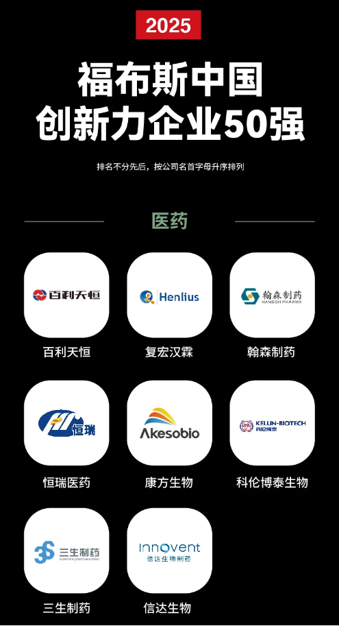 会员之窗 | 三生制药上榜2025福布斯中国创新力企业50强