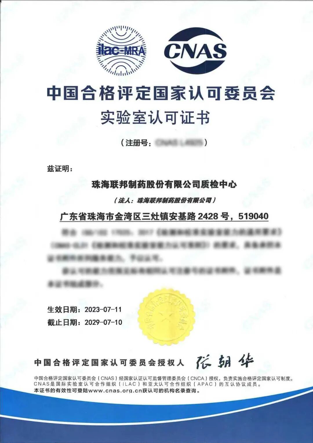 2025年11月1日至2日,中国合格评定国家认可委员会(CNAS)专家组对珠海联邦制药股份有限公司质检中心开展为期两天的现场评审,质检中心申请的29项《美国药典》(USP)、29项《英国药典》(BP)检测能力扩项,以及27项《中国药典》(ChP)标准变更项目全部顺利通过。
