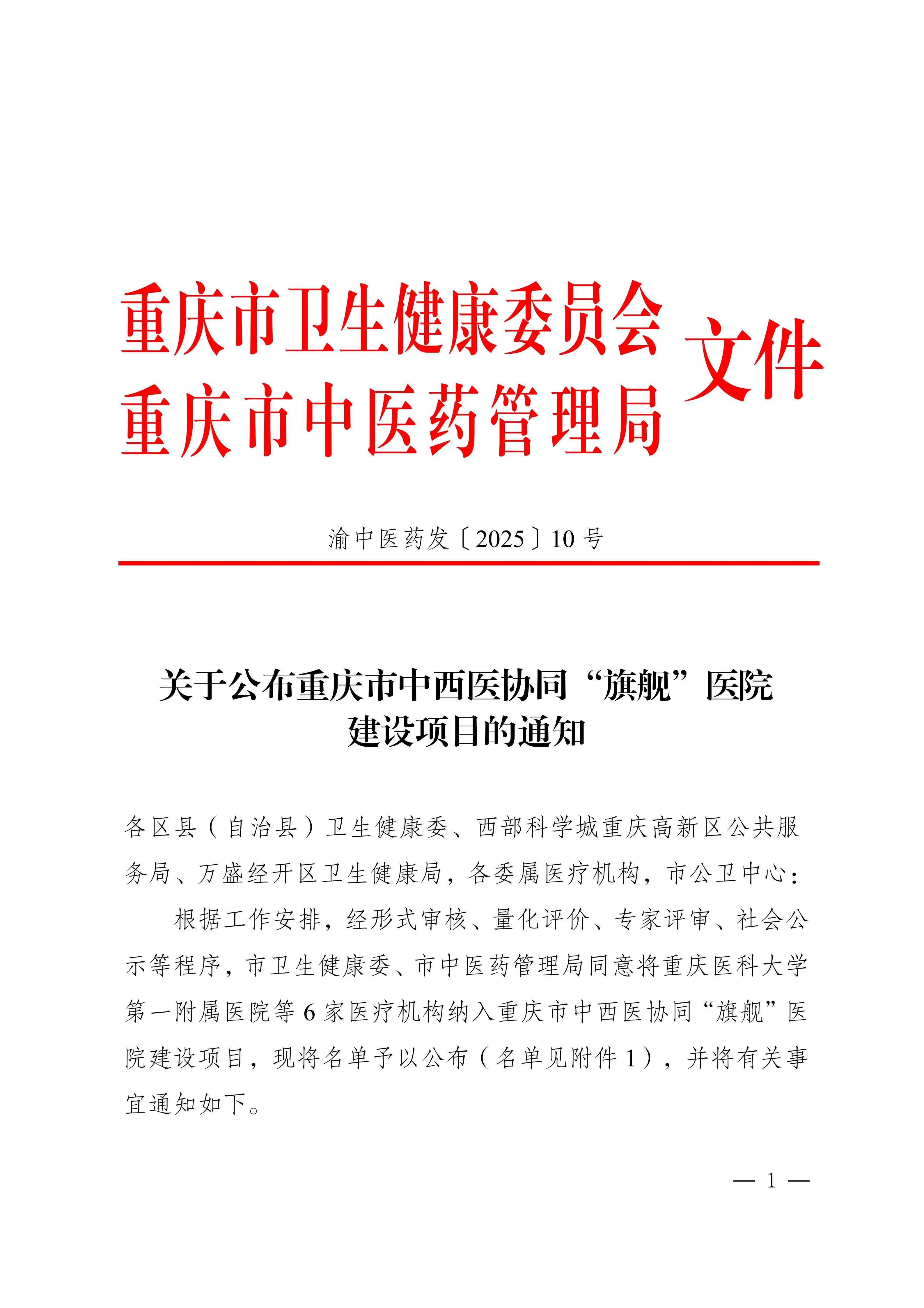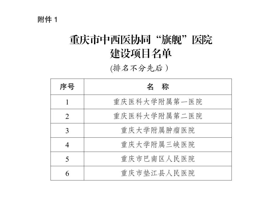 11月26日,市卫生健康委、市中医药管理局联合公布《重庆市中西医协同“旗舰”医院建设项目名单》,全市6家医院入选,重庆市垫江县人民医院名列其中,是全市唯一入选的县级医疗机构。